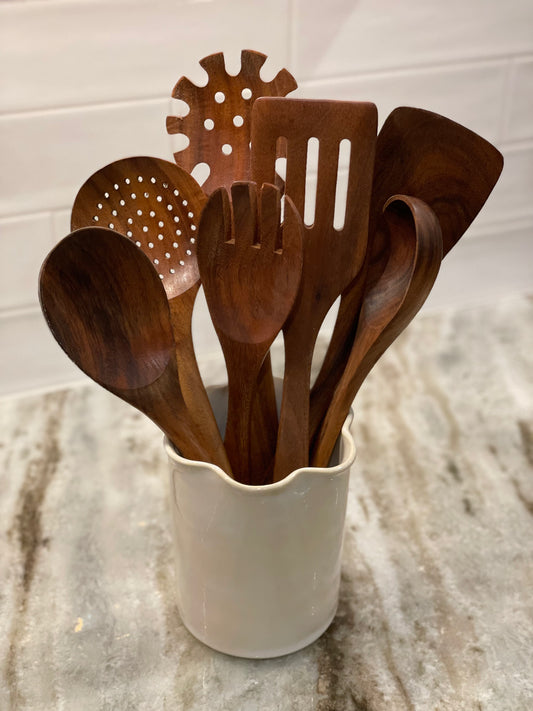 Glossy Eggshell Ruffle Ceramic Utensil Crock // Planter