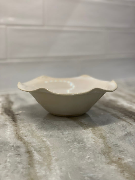 Glossy Eggshell Small Ruffle Ceramic Serving Bowl